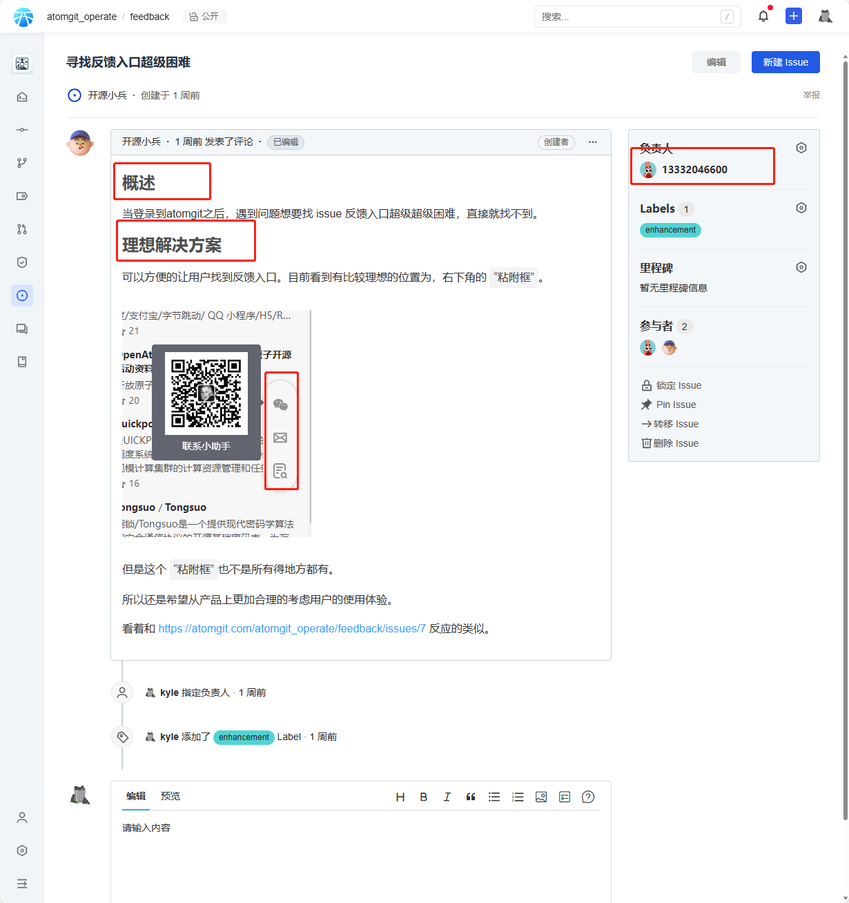 AtomGit开源协作平台官方反馈入口,采用Issue的形式接受来自全球开发者们反馈的各种问题或者建议。在接受Issue反馈的时候,该仓库使用“AtomGit Issue模板”功能,为Issue的创建者提供了可以快速输入Issue的框架。让他们可以更加高效地反馈问题,达到了与官方高效沟通的目的。