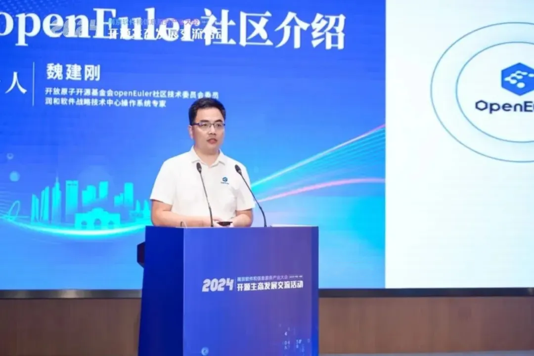 6月24-26日,2024南京软件大会暨工业软件供需大会在南京召开。openEuler社区技术委员会委员、润和软件操作系统专家魏建刚代表社区出席大会,并在开源实践环节上与大家分享了openEuler社区的运营和发展情况。