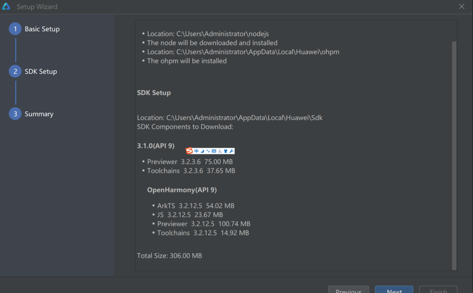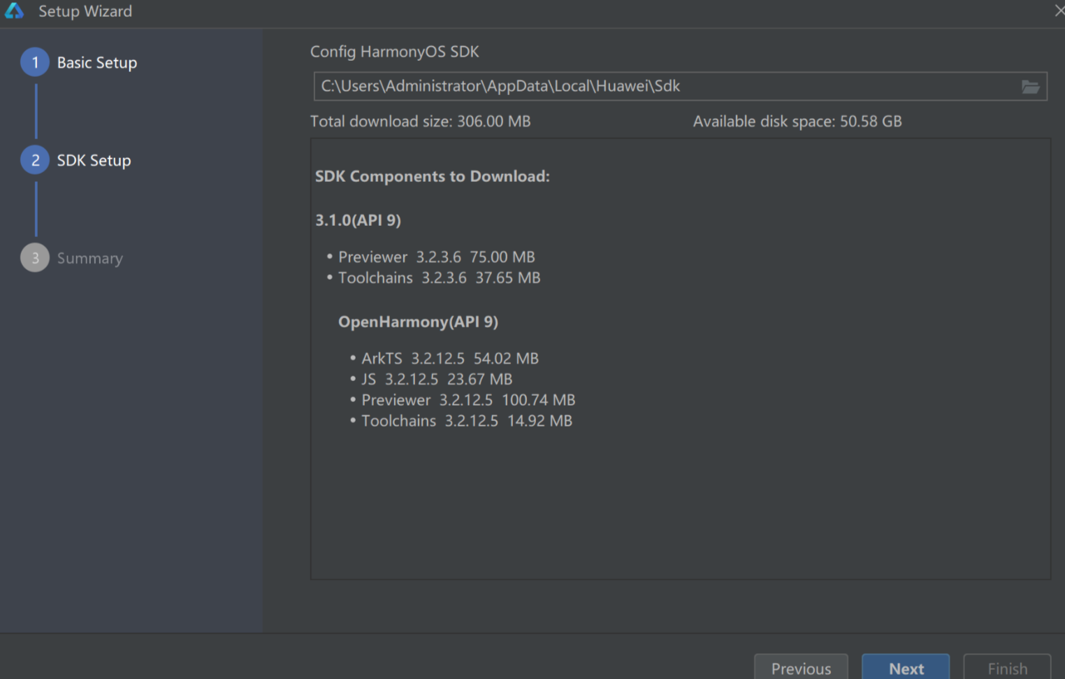 3.单击’Next’进入SDK配置,设置为合适的路径,