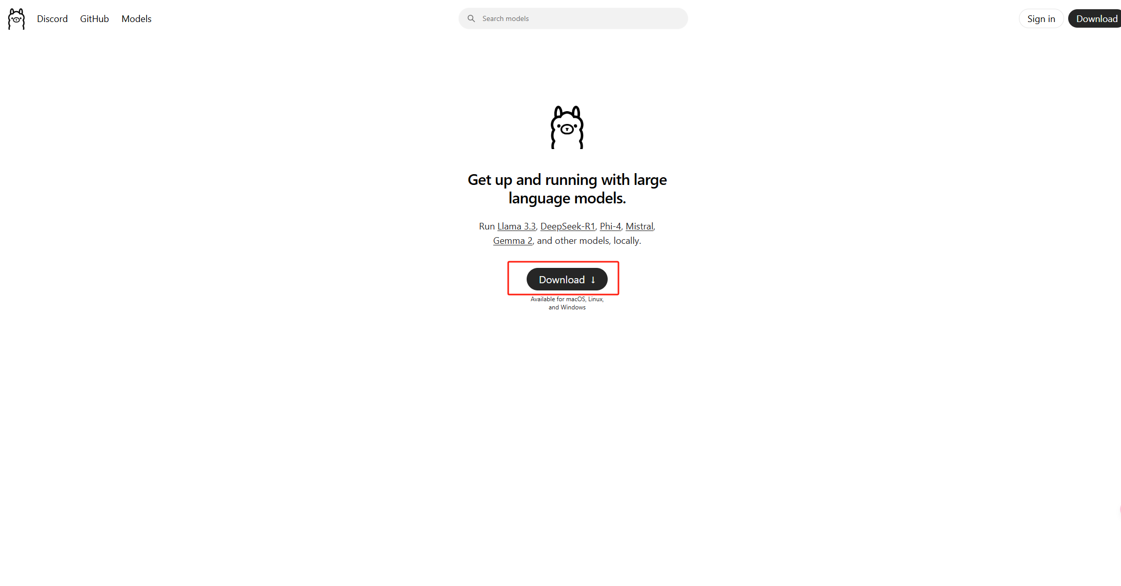1. 下载 ollama,访问 ollama 官网 https://ollama.com,点击下图所示的 download 按钮,或者访问此下载链接