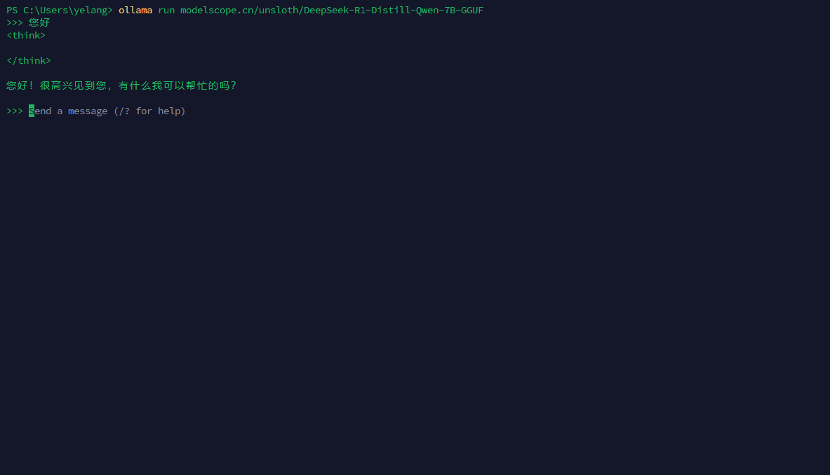 ollama run modelscope.cn/unsloth/DeepSeek-R1-Distill-Qwen-7B-GGUF