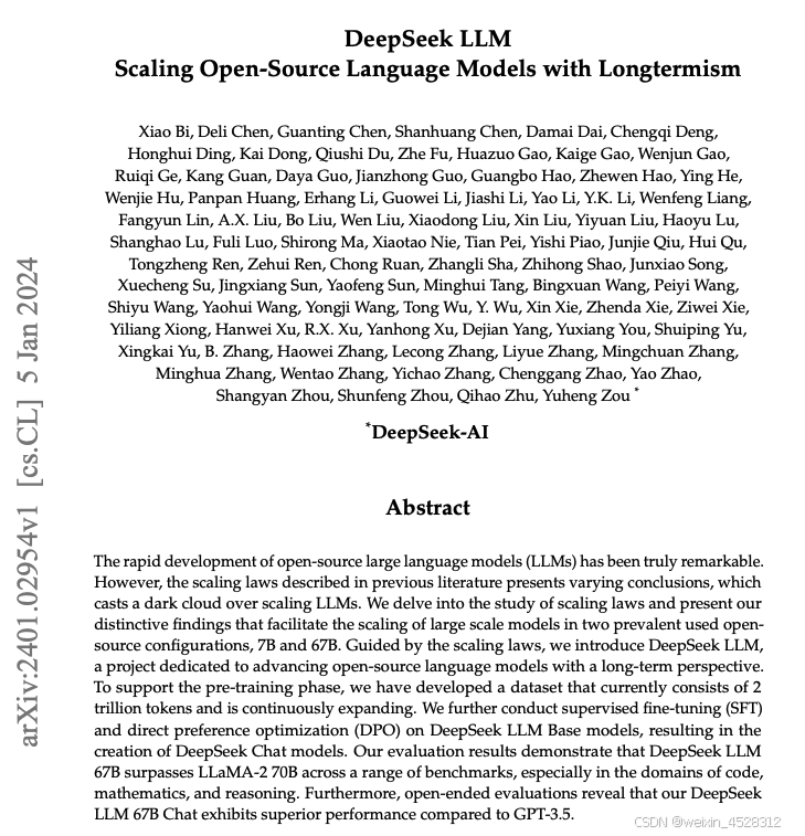 图1,DeepSeek 2024年发布的大语言模型(DeepSeek-LLM)论文
