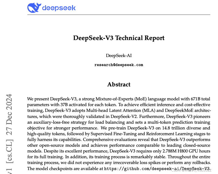 图3,DeepSeek的《DeepSeek-V3》论文截图