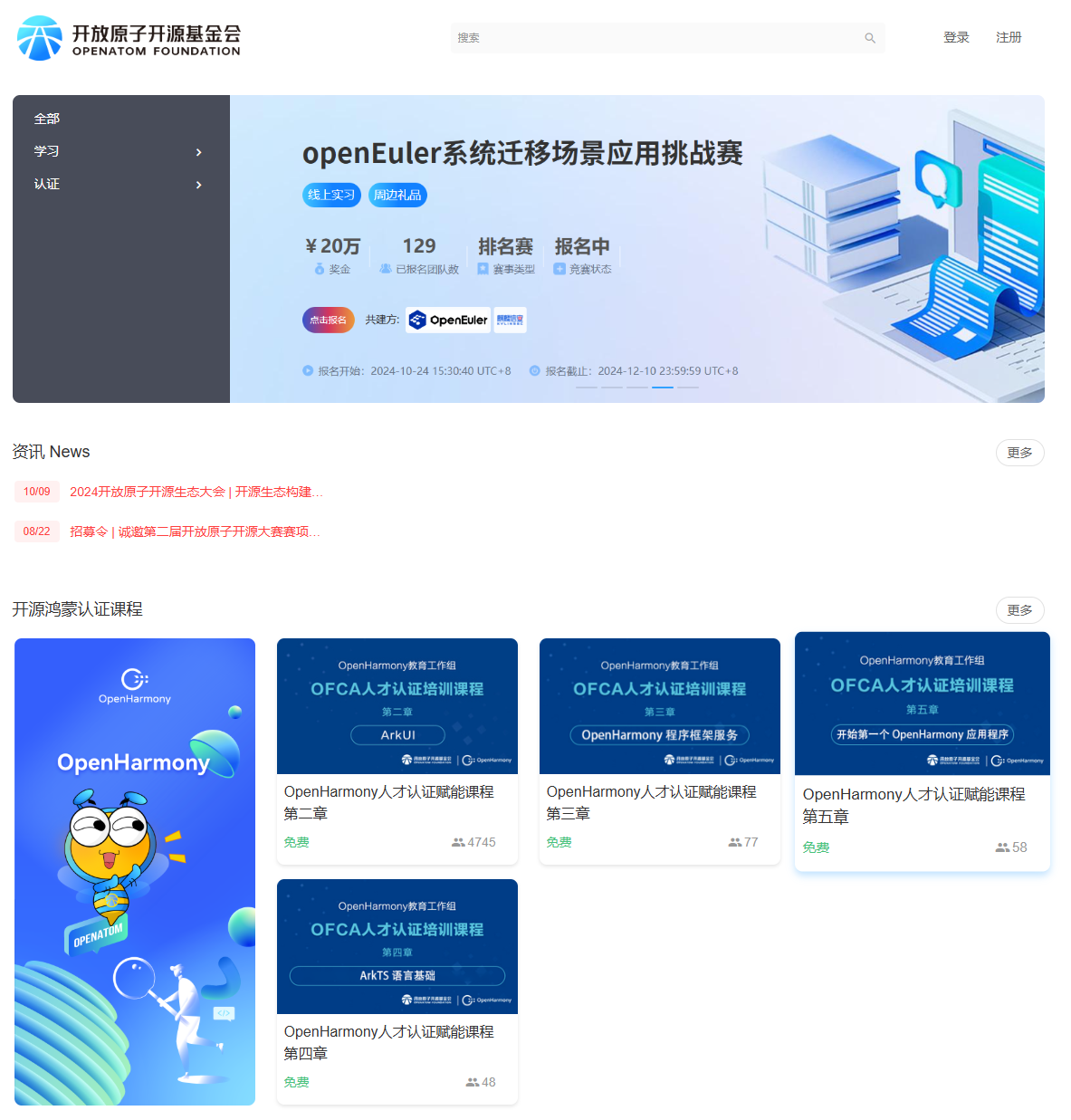 1️⃣ 技能升级利器:资源丰富,100+课程、20万+用户社区,学习不孤单! 覆盖开源鸿蒙认证课程、openEuler认证课程、大模型等前沿领域,助你紧跟技术浪潮!