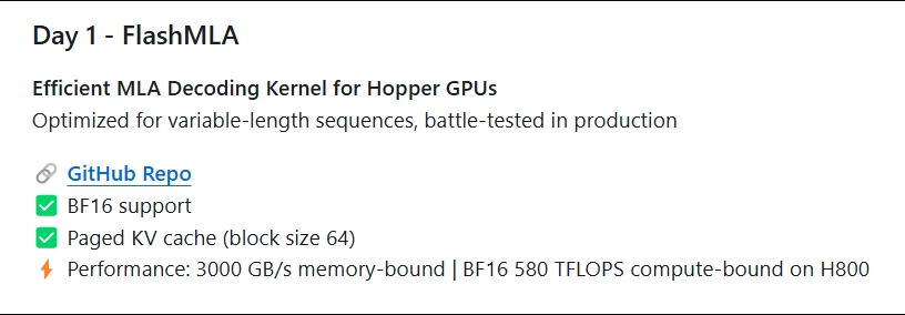 deepseek开源周第一天,FlashMLA,高效的 MLA解码内核。