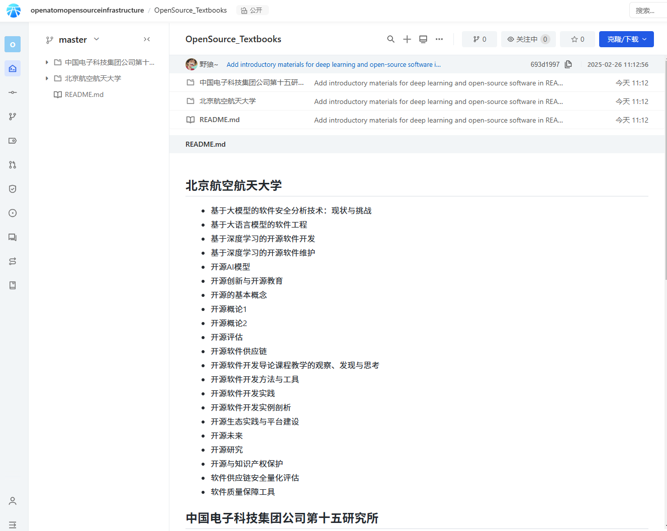 - 访问仓库:直接前往 https://openatom.tech/openatomopensourceinfrastructure/OpenSource_Textbooks/tree/master,浏览丰富的教材目录。