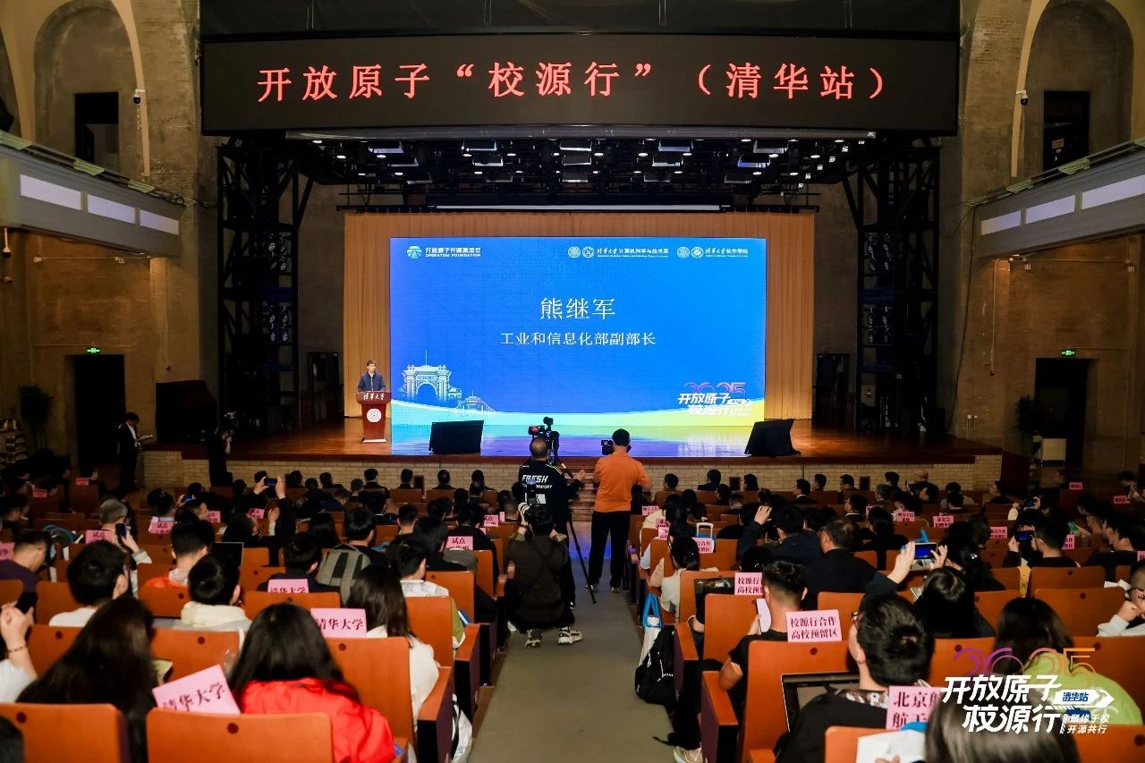 4月18日,由开放原子开源基金会、清华大学计算机科学与技术系、清华大学软件学院主办的开放原子“校源行”(清华站)在清华大学成功举办。工业和信息化部、清华大学领导,教育部高等教育司、中国科协青少年科技中心,以及院士专家、地方工信部门、高校、头部科技企业代表等500余人共话开源生态,推进开源教育。会上正式发布“开放原子校源行2.0”和“以贡献为导向的开源人才评价机制”并正式成立试点小组。工业和信息化部副部长熊继军,清华大学党委常委、副校长曾嵘出席活动并致辞,中国工程院院士孙家广作主题报告,开放原子开源基金会理事长程晓明作成果发布。