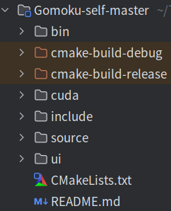 该项目是一个基于蒙特卡洛树搜索算法的五子棋程序,为了提高搜索效率,使用CUDA实现了蒙特卡洛模拟部分的并行化模拟,故在项目中引入了CUDA代码,为了构建该项目,利用CMake将CUDA算子编译为动态链接库(静态库同理),将UI界面与后端逻辑编译为可执行文件,在执行文件中调用动态链接库。