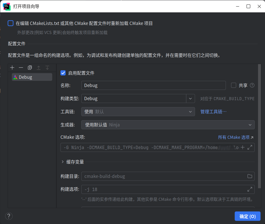 通过CLion打开项目,弹出向导: