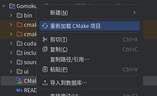 CMakeLists.txt,选择“重新加载CMake”项目,即可生成构建所需文件(其实第一次打开项目会自动生成)