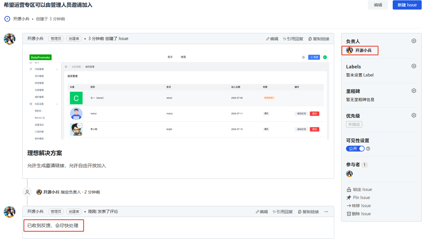 场景三:为issue指定负责人