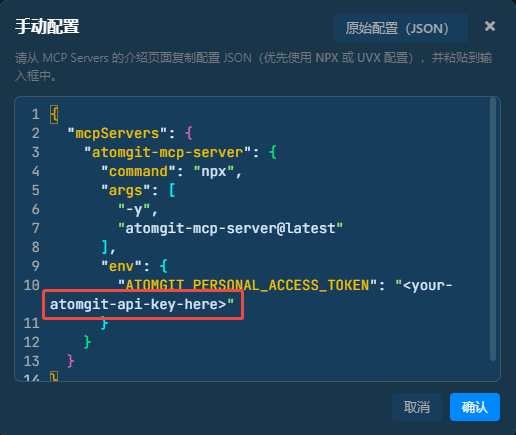 "ATOMGIT_PERSONAL_ACCESS_TOKEN": "<your-atomgit-api-key-here>"