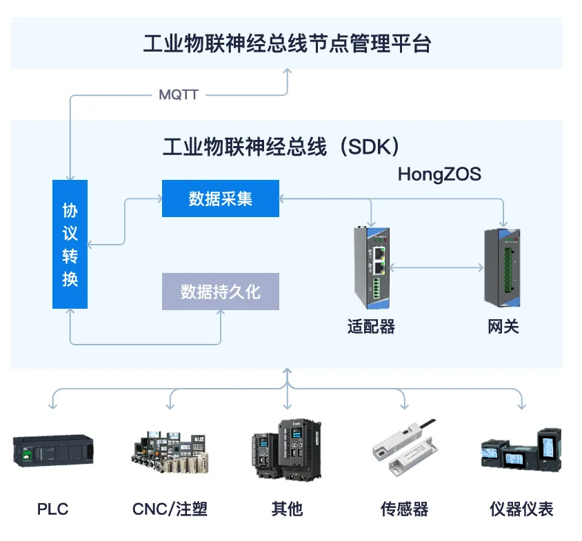 开源鸿蒙分布式架构支持 PLC、数控机床、手持终端等设备无感协同与数据共享。工业物联神经总线作为 “开源鸿蒙工业传输桥梁”,实现多协议设备数据标准化转换与上传,解决传统工业现场 “协议碎片化” 难题。