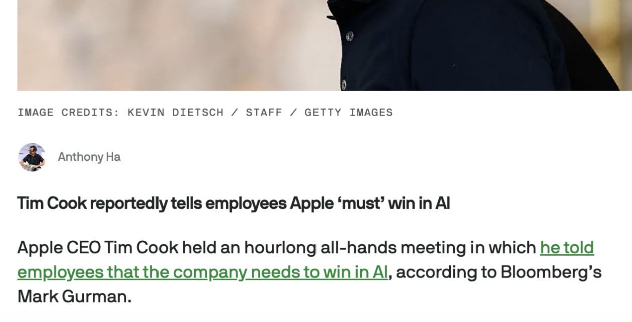 库克罕见全员动员:苹果“必须赢下AI这场仗”