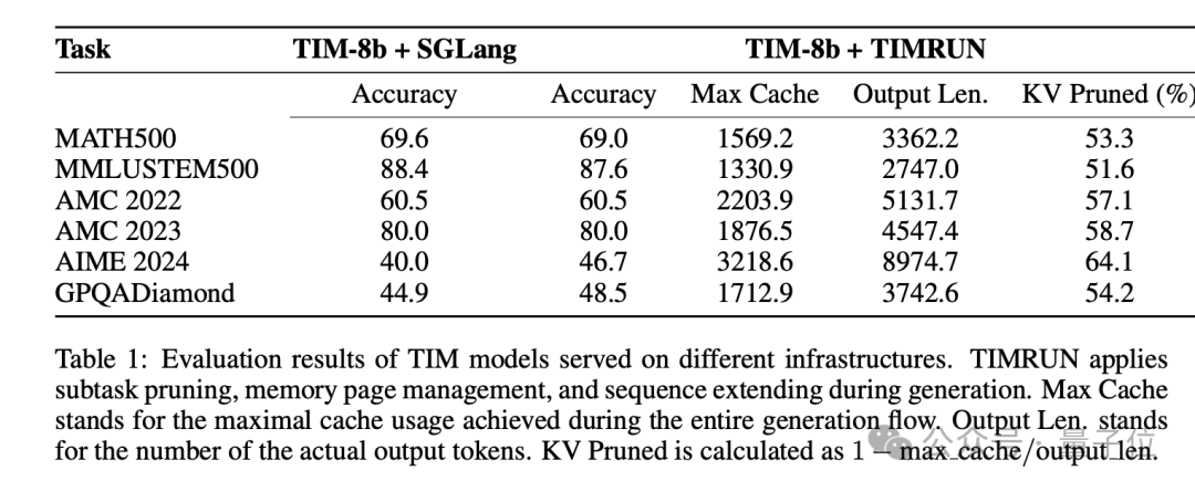 实验表明,这种机制可以减少超过50%的KV缓存使用,在AIME 2024数学竞赛任务上甚至达到了64.1%的剪枝率。