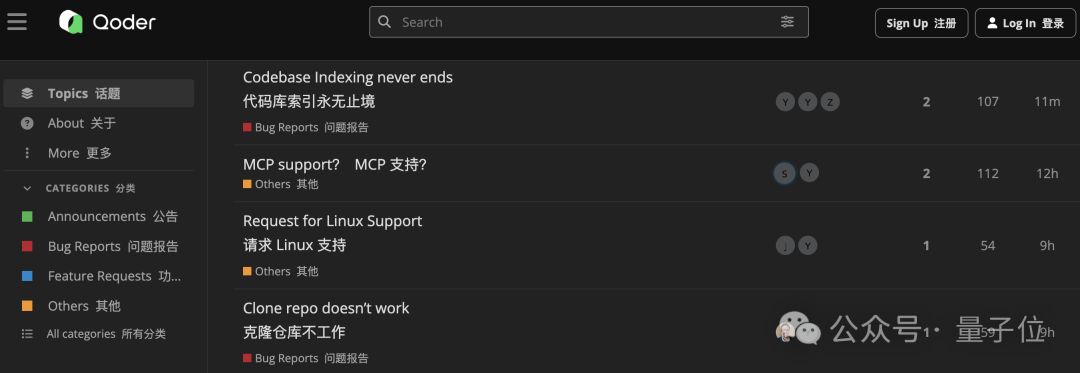 顺带一提,除了基础平台,Qoder还开发了一个论坛,支持用户交流和反馈错误报告。