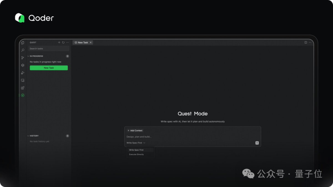用户不需要写代码,只需要用自然语言描述想要实现的功能的规格说明,Qoder就能够自动理解规划。