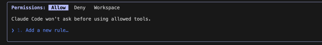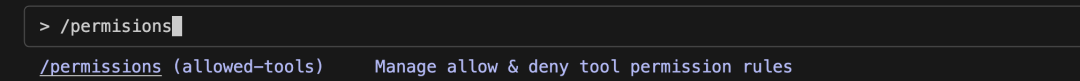 启动 Claude Code 后也可使用 /permissions 命令添加或删除允许的工具,这些修改也会同步到json文件中: