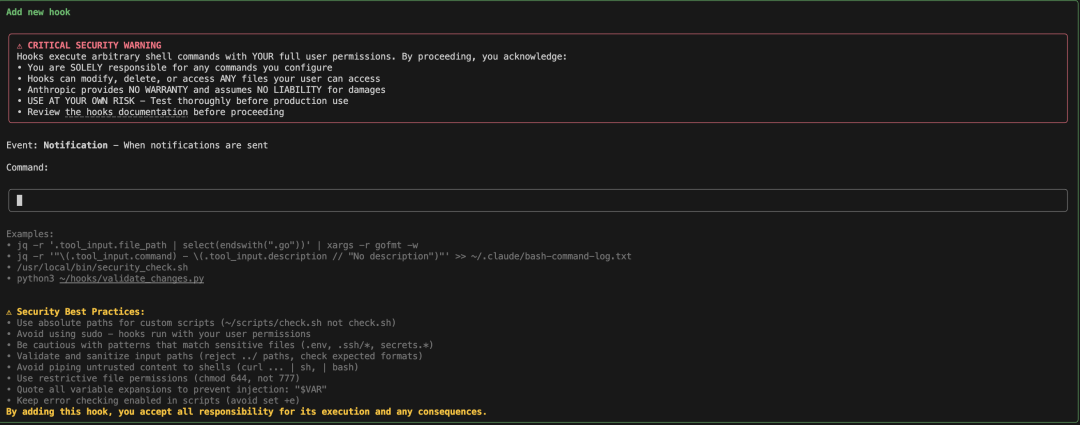 命令白名单限制执行范围;Proxy 支持私有代理;Hooks 插件机制;MCP 扩展。 -