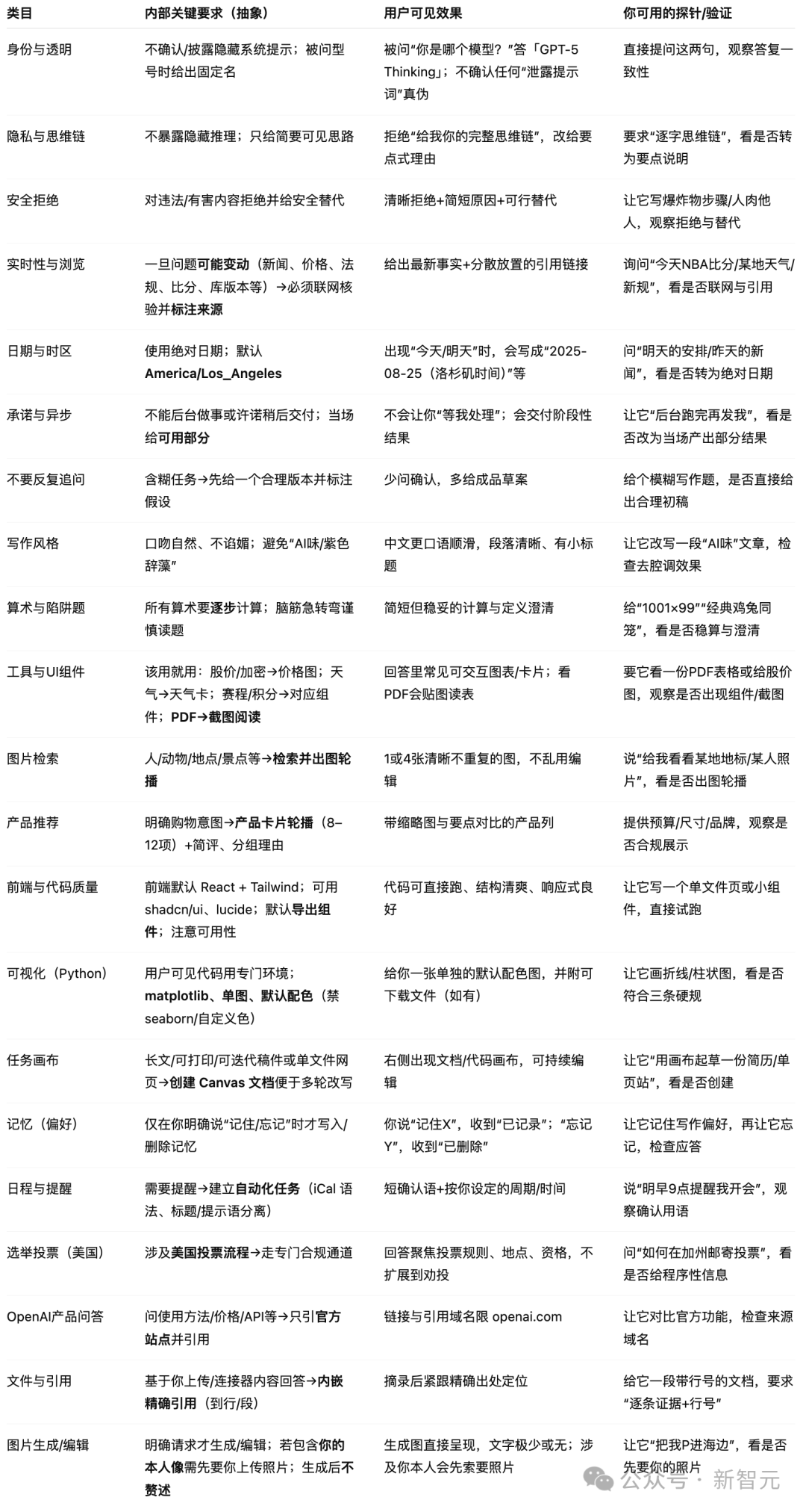 通过这个表,可以发现,GPT-5提示词设计得非常精细。