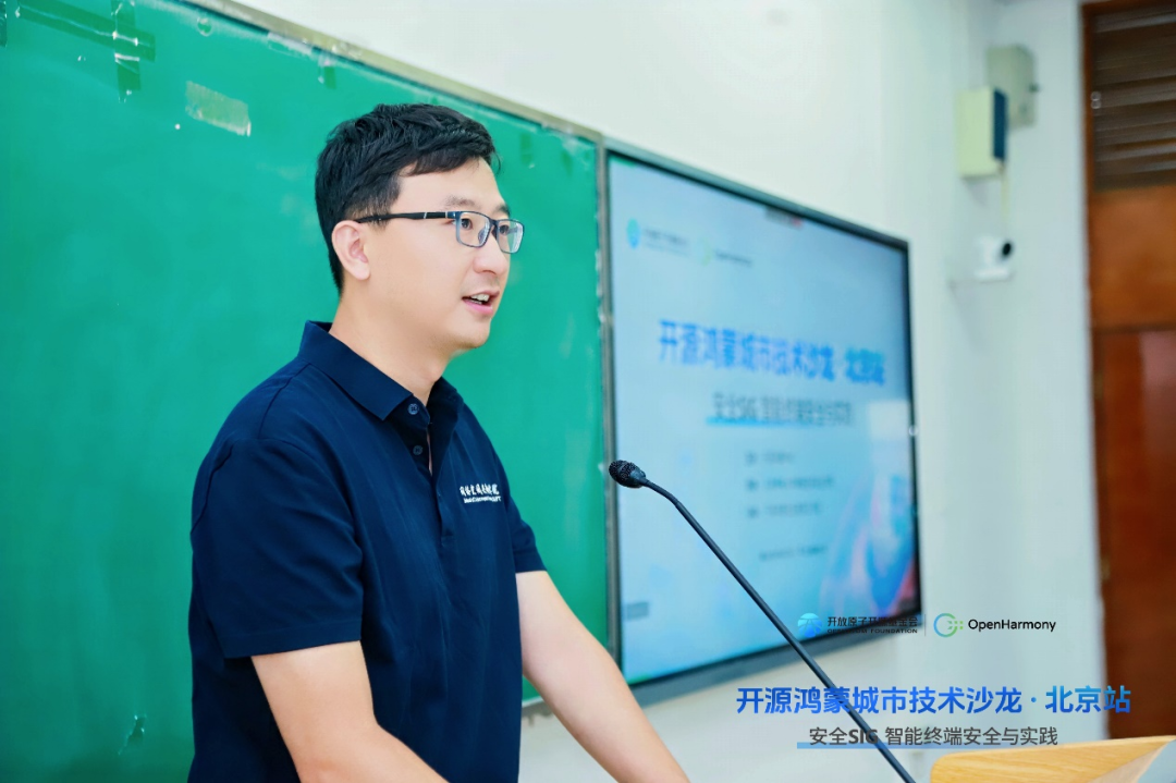 开源鸿蒙项目群教育工作组组长、华为鸿蒙生态运营经理谭景盟在致辞中介绍了开源鸿蒙社区多年来在开源鸿蒙系统安全实践与教育方面的持续努力,包括联合高校、企业及开发者共同推进系统安全机制完善与人才培养工作。期待通过本次开源鸿蒙技术沙龙活动,与广大开发者、院校及企业伙伴继续深化合作,不断完善开源教育体系,共同建设更安全、更创新的智能终端底座,赋能万物智联时代高质量发展。