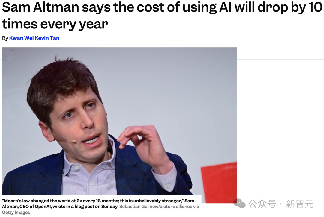 在2025年2月,OpenAI的奥特曼接受采访时曾说,AI的成本每年将下降10倍。