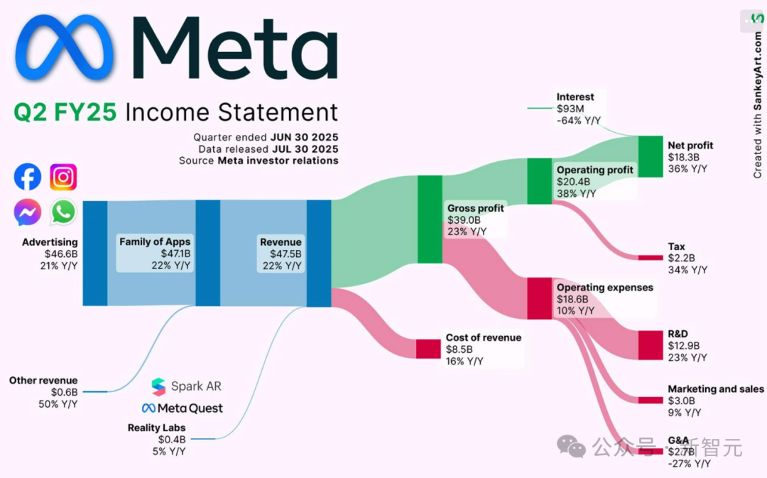 2024年,Meta的广告收入增长至1606.3亿美元,同比增长22%,这主要得益于广告展示次数(增长11%)和平均广告价格(增长10%)的双重提升。