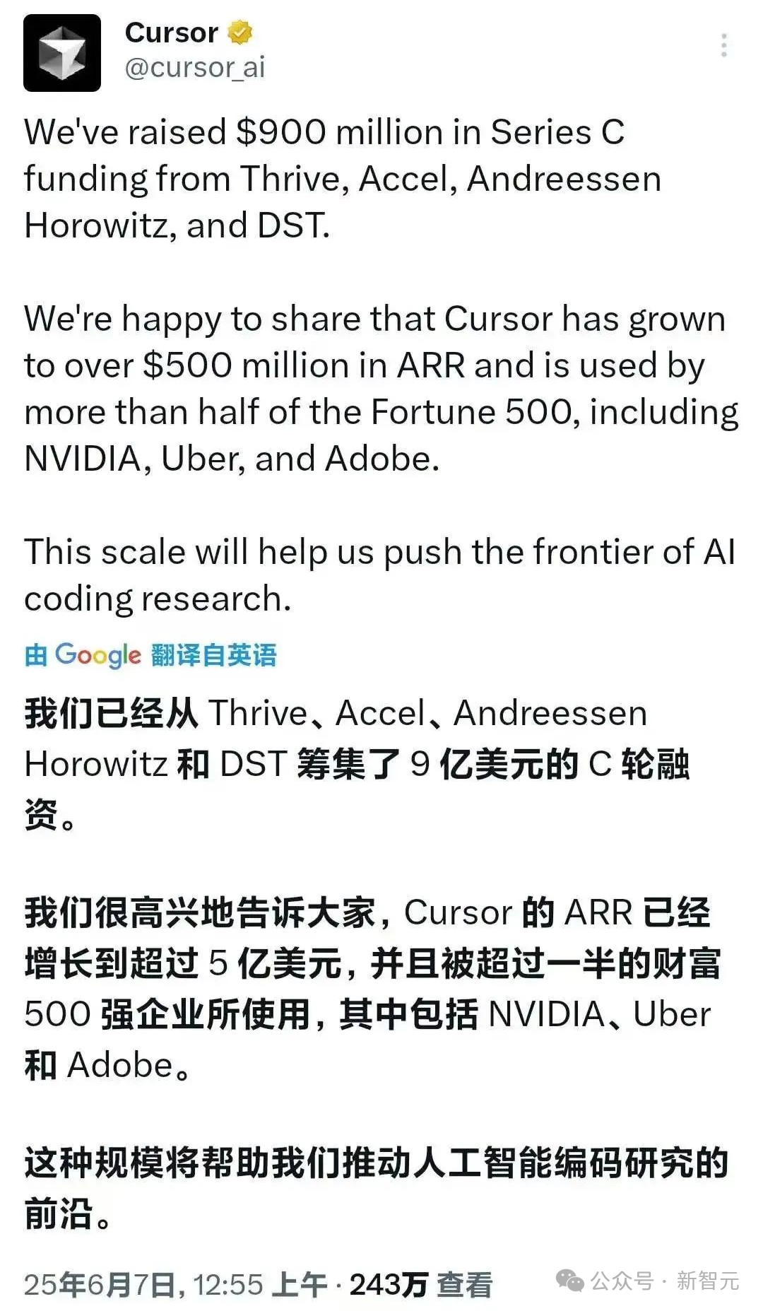 到2025年6月,Cursor的ARR已经超过5亿美元!