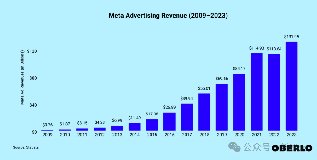 在2023 年,Meta广告收入达到了1319.5亿美元,同比增长16.1% 。
