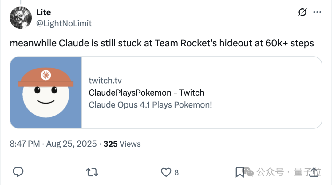 其中,Gemini 2.5 Pro在今年五月的直播中,成功通关了《宝可梦蓝》,而Claude就比较惨了,至今仍被困于火箭队。