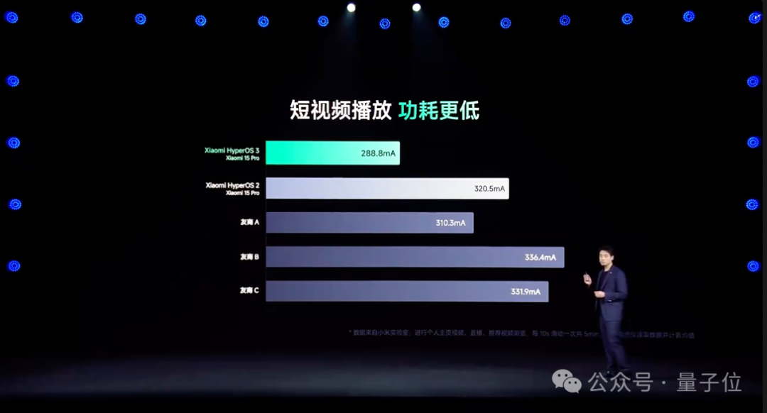 并且在用户使用频率较高的短视频方面,在模拟抖音浏览测试中,澎湃OS 3的功耗显著降低,以5000mAh电池为例,能比第二名多刷一个多小时。