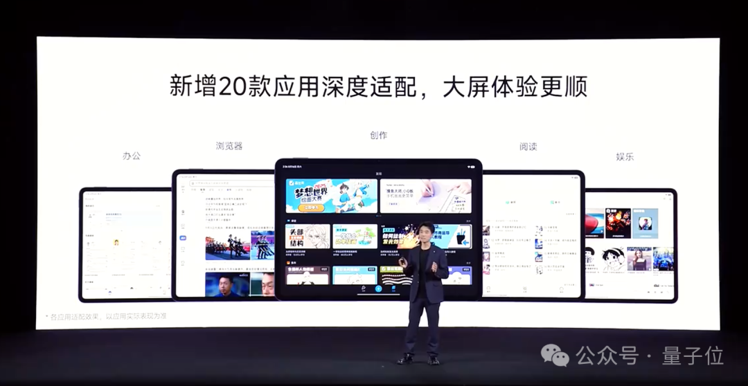 与此同时, 平板功能也进一步增强,手写笔体验优化(超低时延、跟随压感),新增1:9左右分屏和上下分屏,提供PC版浏览器,并新增20款应用深度适配大屏。