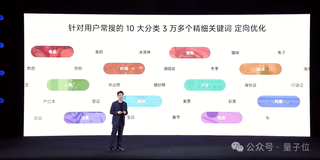 对此,他们针对用户常搜的十大类三万多个关键词进行优化,可精确搜索证件(签证、户口本等)、毕业照、合影等。