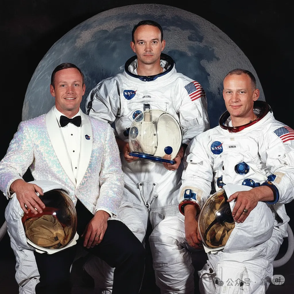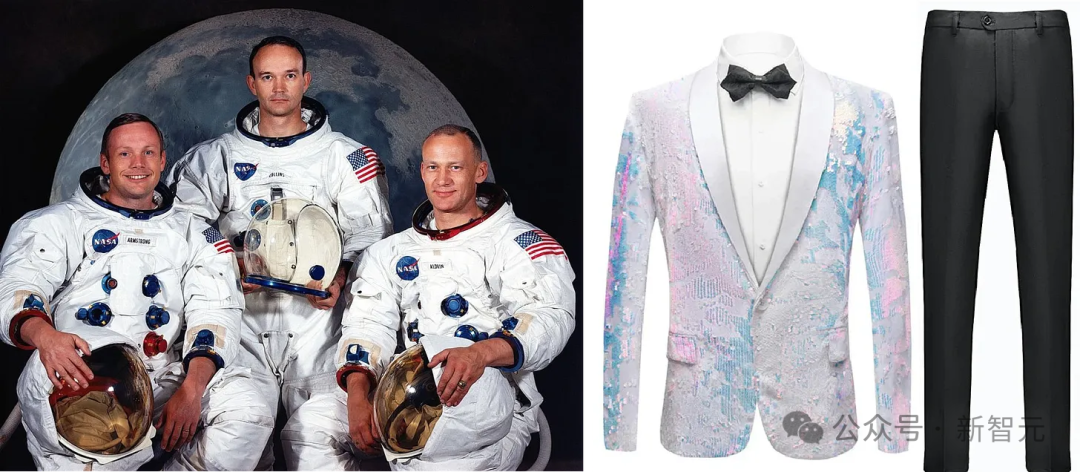 举个例子,我们上传一张阿波罗11号宇航员的经典照片,以及一张亮片晚礼服的图片,然后给出了最简单的提示: