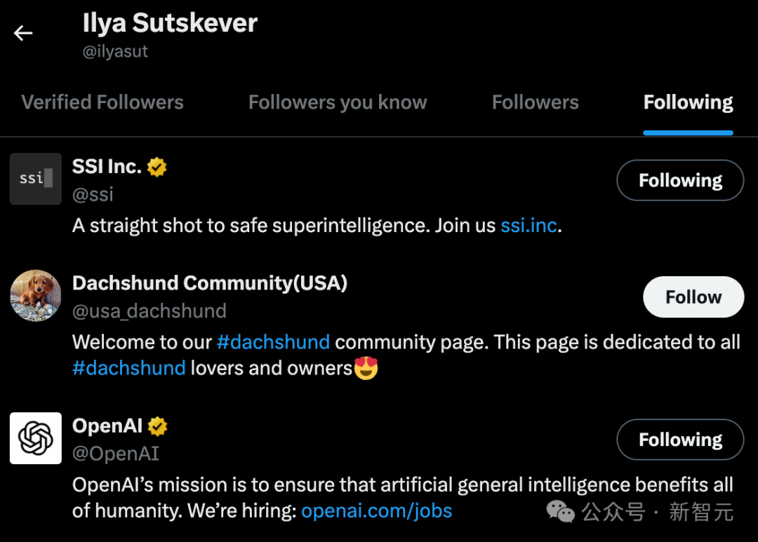 还有人又去扒了扒,在Ilya关注的列表中,依旧仅有三人:SSI、OpenAI、Dachshund Community。