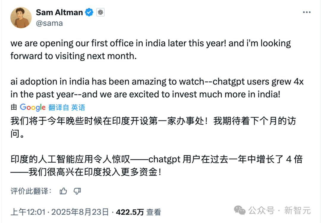 这么一看,似乎印度对于OpenAI的战略意义更加重要!