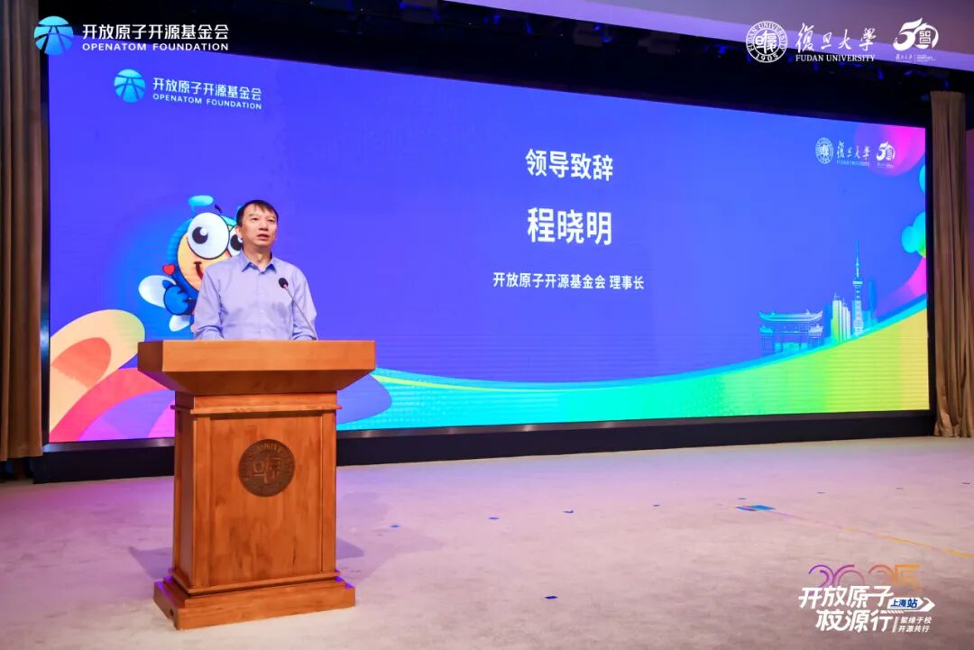 程晓明在致辞中表示,基金会以服务开源生态建设为核心,聚焦开源项目发展与人才培养,通过校源行、大赛等推动开源知识普及与产业实践协同并进。同时,基金会已在上海成立开放原子(上海)开源促进中心,聚焦人工智能与开源融合创新,助力上海成为相关领域协同发展的重要策源地。未来,基金会将进一步支持高校开展开源教学实践,为青年学生搭建更广阔的成长与发展平台。